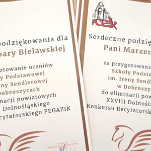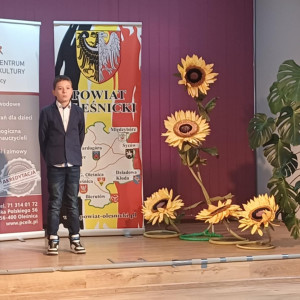 25 marca w Powiatowym Centrum Edukacji i Kultury w Oleśnicy Janek Krawczyk zaprezentował fragment z powieści dla młodzieży autorstwa Joanny Olech pt "Dynastia Miziołków". Przygotowany był fantastycznie, co doceniła komisja. I miejsce oznacza awans do finału konkursu w kategorii klas IV-VI. Sukces naszego ucznia cieszy tym bardziej, że poziom konkursu był bardzo wysoki.