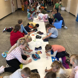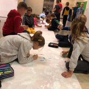 Podczas twórczego działania dzieci mogły wyrazić swoje emocje i myśli poprzez sztukę, a także współpracować z rówieśnikami, co sprzyjało integracji i budowaniu pozytywnych relacji. Powstały kolorowe wzory i piękne obrazy, które nie tylko upiększyły przestrzeń, ale również przypomniały nam wszystkim o tym, jak ważne jest dbanie o nasze samopoczucie.
