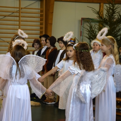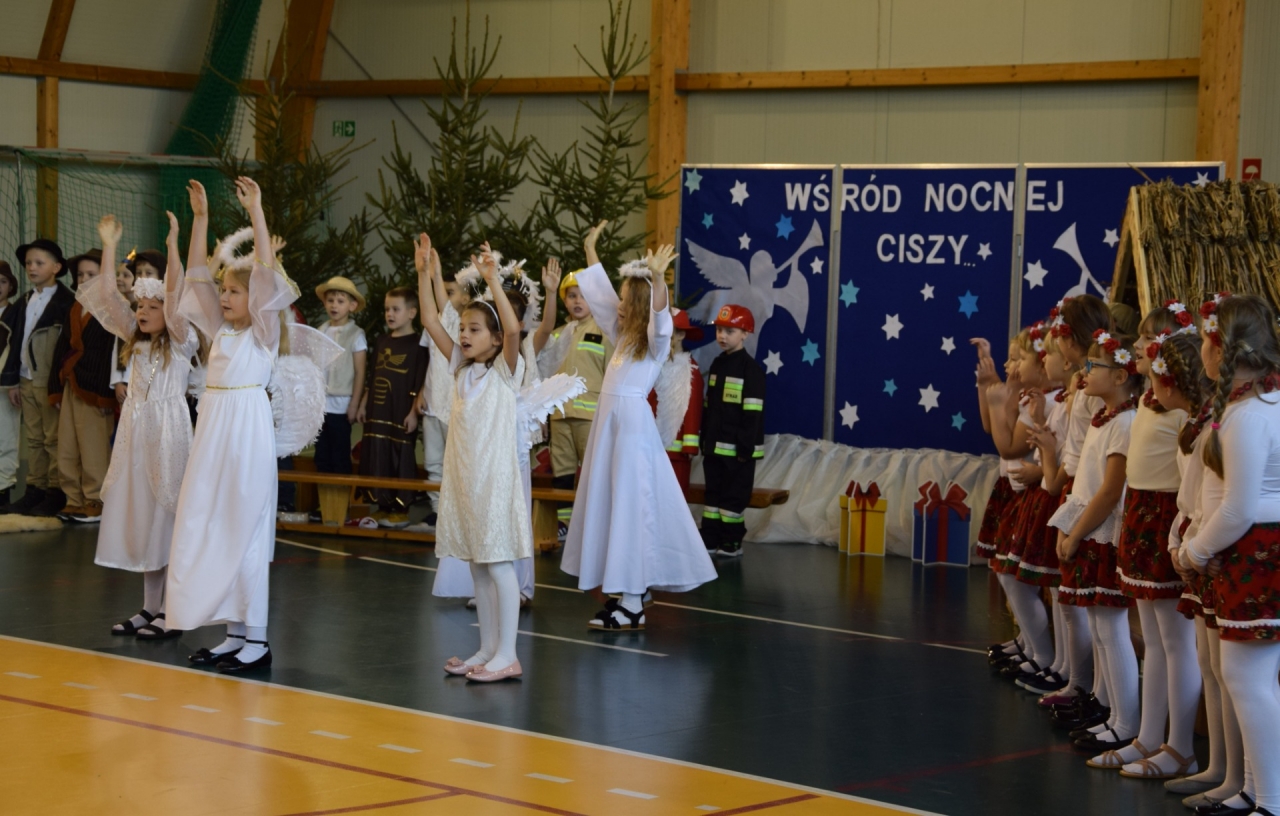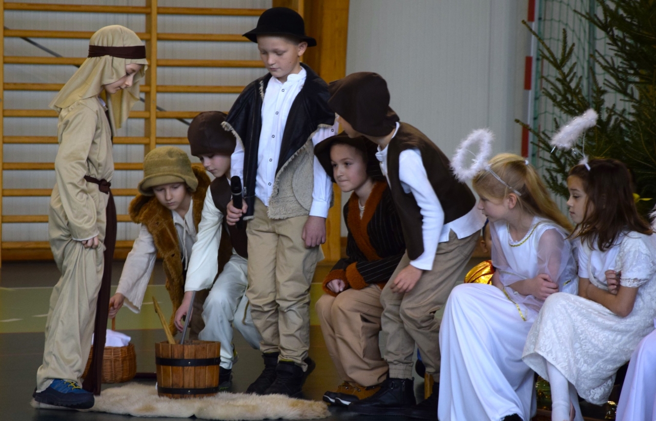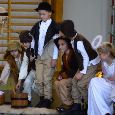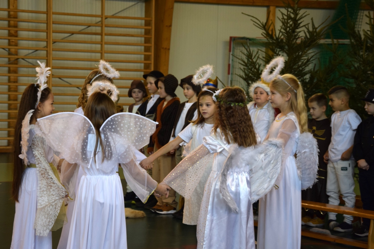 Wzruszające, wesołe i barwne przedstawienie powstało dzięki zaangażowaniu Pani Joanny Misiuny i Pani Kingi Furgał, które przygotowały swoich uczniów. Dekoracje i stroje to z kolei zasługa rodziców. Bardzo dziękujemy i życzymy wesołych świąt!