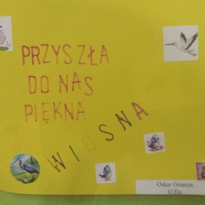 Uczniowie klas I – III wzięli udział w konkursie „Przyszła do nas piękna wiosna”. W książeczkach dzieci przedstawiły walory wiosny poprzez autorskie opowiadania, wiersze, interpretacje przysłów i cytatów. Przy ilustrowaniu książeczek wykorzystali różne techniki plastyczne.
