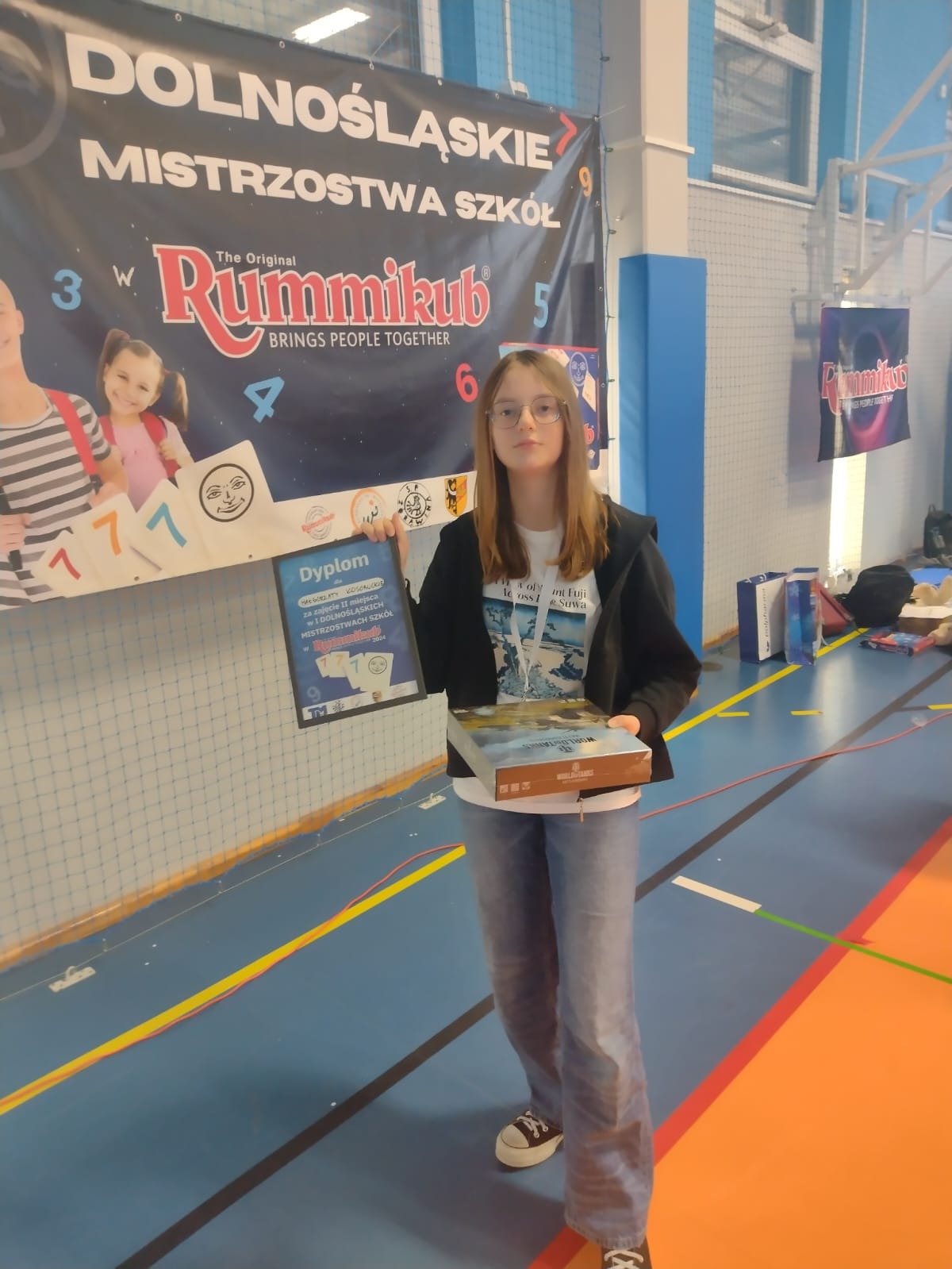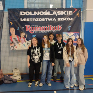 W I Dolnośląskich Mistrzostwach Rummikub uczniowie naszej szkoły w składzie: Małgorzata Kossobudzka, Jakub Lewicki, Dagmara Kucharska, Klementyna Zawierucha, Antonina Hupało i Jakub Mierzwa zdobyli 3 miejsce! W ramach klasyfikacji indywidualnej Małgorzata Kossobudzka zdobyła 2 miejsce. Gratulujemy! W konkursie wzięło udział 20 szkół i ponad 100 uczniów. Podczas trwania rozgrywek uczniów odbył się Turniej Nauczycieli. Tutaj jednak bez sukcesów. Może za rok :).