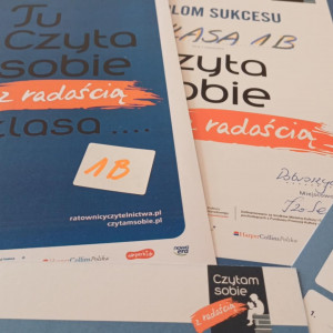 Wwszyscy otrzymali karty czytelnika, gdzie od teraz będą dokumentowane ich osiągnięcia czytelnicze. Nasze pierwszaki biorą udział w projekcie Ratownicy Czytelnictwa i czytają - zgodnie z założenami akcji - z radością. Każdy z nich powinien samodzielnie przeczytać co najmniej 10 książeczek z serii "Czytam sobie".