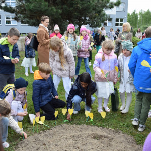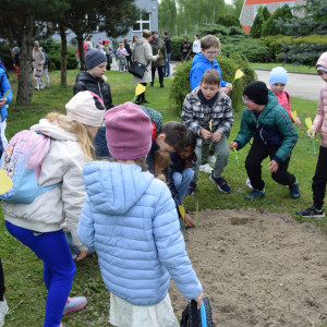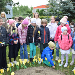 Dziś przed szkołą posadziliśmy jabłoń - drzewo naszej patronki Ireny Sendlerowej. Przy drzewku pojawiły się także bratki i mieczyki. A także żółte żonkile, które są symbolem zbiorowej pamięci.