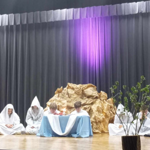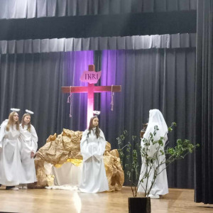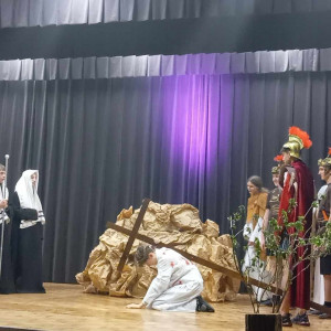 Dnia 19 marca odbyło się przedstawienie pt. "Misterium Paschalne" przygotowane przez klasę 7c. Uczennice i uczniowie wcielili się w role, aby zaprezentować ostatnie godziny życia Pana Jezusa. Nasi młodzi aktorzy świetnie wywiązali się z powierzonego im zadania i cała szkoła mogła sama przekonać się jak odrobina poświęconego czasu i włożone chęci uruchamiają ukryte talenty do wystąpień publicznych.