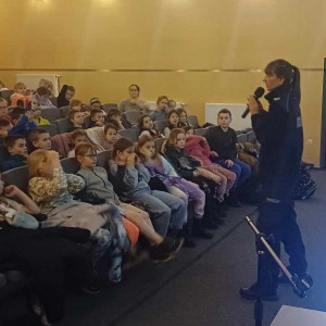 Wczoraj przedstawicielka policji spotkała się z uczniami uczęszczającymi na zajęcia świętlicy szkolnej. Uczniowie w sali dobroszyckiego centrum kultury wysłuchali prelekcji o bezpieczeństwie i mogli zadawać Pani policjantce pytania.