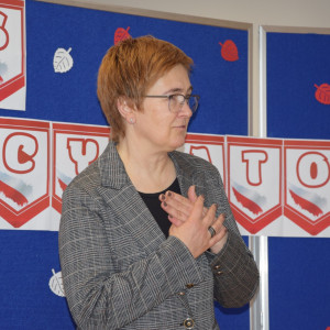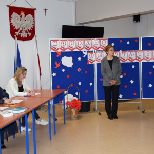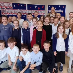Występy uczniów poprzedziła przemowa Pani Marzeny Gołąb, która prawie 20 lat temu wymyśliła konkurs "strofy o Ojczyźnie". Nagrody ufundowane przez Radę Rodziców wręczyła Pani Dyrektor Agnieszka Dorobiała.