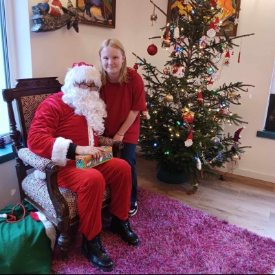 Do ciepłego pomieszczenia wróciliśmy wraz ze Świętym, którego usadzono w stylowym fotelu, i który cierpliwie pozował do zdjęć, przyjmując jednocześnie szeptane na ucho prośby i życzenia świąteczne.Na koniec zapakowaliśmy własnoręcznie przygotowane i ozdobione pierniczki w celofanowe torebki i ruszyliśmy w drogę powrotną.To był bardzo miło spędzony czas odpoczynku od trudów szkolnego życia.