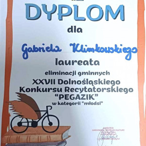 Magdalena Bojanowska z klasy 5a i Gabriel Klimkowski z klasy 4a wygrali etap gminny konkursu "Pegazik" i będą reprezentować szkołę podczas eliminacji powiatowych.