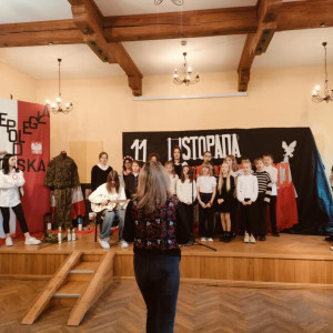 W dniu 14 listopada 2024r. w Specjalnym Ośrodku Szkolno-Wychowawczym odbył się koncert poświęcony 106 rocznicy odzyskania przez Polskę niepodległości. Uczniowie Ośrodka zaprosili szkolny chór do udziału w wydarzeniu i razem uczcili to święto w przedstawieniu słowno-muzycznym pt. "Śpiewamy dla Niepodległej". Dziękujemy za możliwość uczestnictwa w tak pięknym wydarzeniu i gratulujemy wszystkim uczestnikom przepięknych występów.