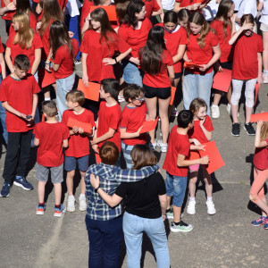 Dziś o godz. 10.00. przed szkołą pojawiła się "żywa flaga". Uczniowie wszystkich klas ubrani w białe i czerwone koszulki uczcili w ten sposób Dzień Flagi Rzeczypospolitej Polskiej, który przypada 2 maja.