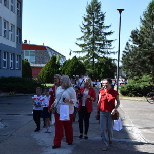 Tego samego dnia przed szkołą przeszedł biało-czerwony pochód przedszkolaków z Gminnego Przedszkola Marzeń i Talentów, który przywitała Pani Dyrektor Marta Richter i Panie z Centrum Usług Wspólnych Gminy Dobroszyce. Pochód prowadziła Pani Monika Zdobylak, Dyrektor Gminnego Centrum Kultury i Pani Marta Kasina, Dyrektor Przedszkola.