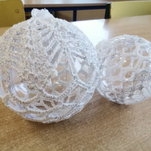 Na zdjęciach bombki wykonane przez Natalię Szałas z 5b i praca "Dary jesieni" wykonana przez Marię Halikowską z klasy 5a.