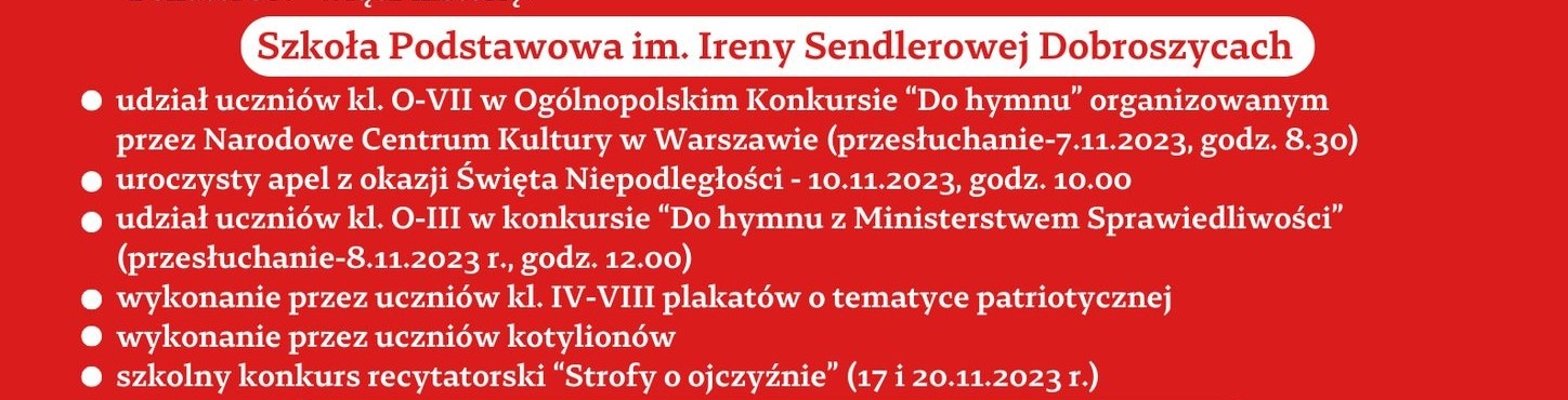 W październiku i listopadzie zaplanowane zostały w szkole akcje charytatywne, apele, konkursy, które mają przypominać uczniom o potrzebie pielęgnowania pamięci o bohaterach naszej wolności, szczególnie tych, którzy są związani z historią danego miejsca, regionu, społeczności.